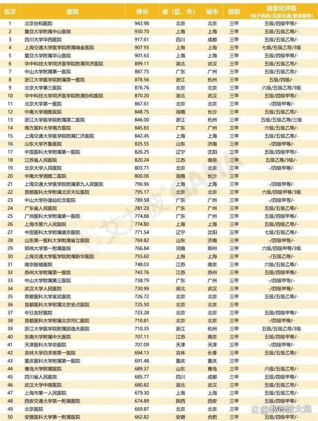 2023年全国医院排名,协和夺冠,湘雅告别辉煌